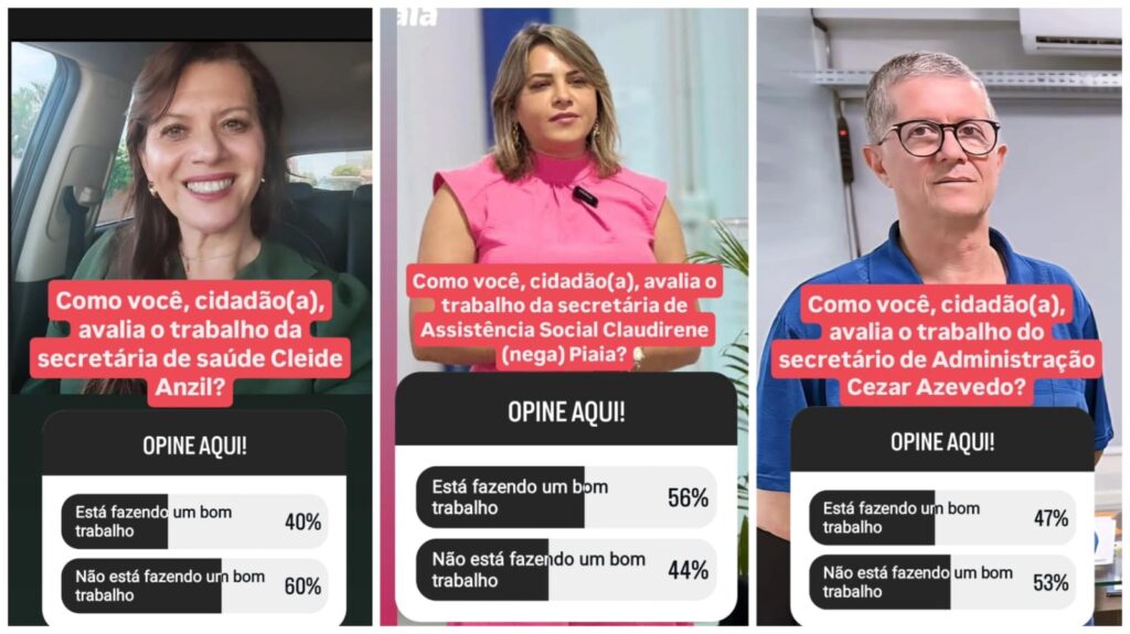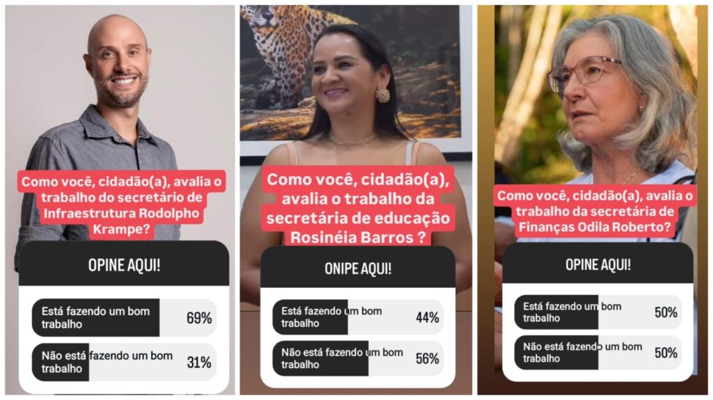 Por outro lado, secretarias que tradicionalmente enfrentam maior cobrança pública — por tratarem de áreas mais sensíveis — apresentaram índices um pouco abaixo da média. A secretária de Educação, Rosinéia Barros, recebeu 44% de aprovação, enquanto Cleide Anzil, da Saúde, foi aprovada por 40% dos votantes. Esses resultados, porém, são considerados normais diante da complexidade e visibilidade das pastas, que lidam diretamente com serviços essenciais e de grande impacto na vida da população.